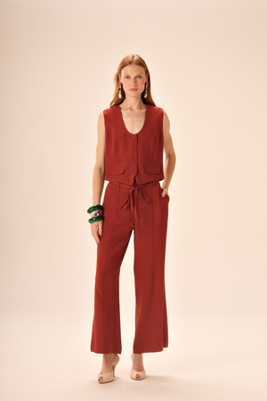 Colete Celina em crepe patou traduz elegância contemporânea em uma peça versátil e sofisticada. Possui detalhes de bolsos e fechamento com botões. Acabamento interno com forro em acetato.